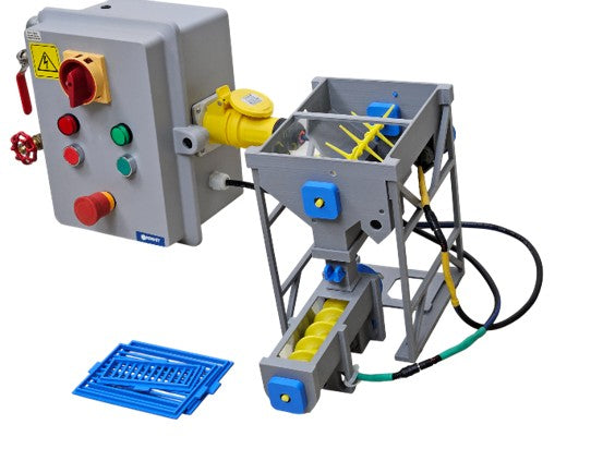 Diseño profesional para formación técnica: Reproduce un sistema de máquina industrial con alimentación eléctrica, neumática e hidráulica a baja tensión, ideal para prácticas de mantenimiento seguro.