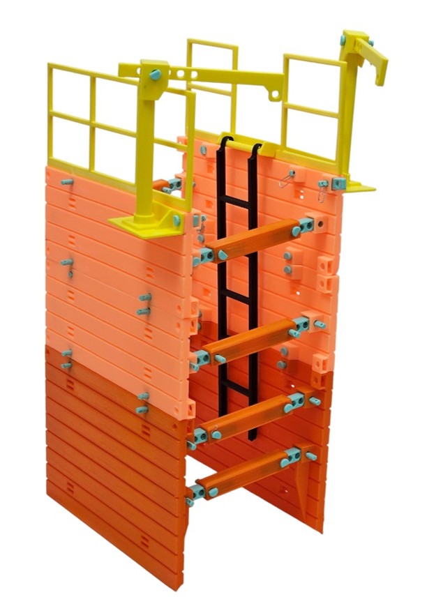 Modelo didáctico impreso en 3D a escala 1:6,6 diseñado para la enseñanza práctica en seguridad de excavaciones y trabajos en zanjas. Representa sistemas de entibado y apuntalamiento que previenen derrumbes y colapsos durante labores subterráneas, permitiendo comprender de forma visual y segura los métodos de sostenimiento y protección del personal en campo.